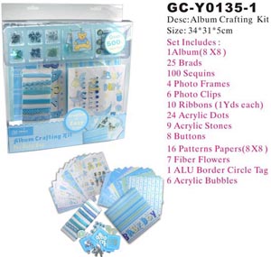 Album Kit contains a wide range of original accessories, such as Glitter Glue、Fibber Flowers、ALU Boarder Tag、Ribbon 18 inch Each、Yd Fancy Yarn、Acrylic Tag、Buttons、Acrylic Brads、Acrylic Stones、Brads、EVA Dots、Sequins.Allows you to give full play to your own imagination to create your own Album Crafting Kit. Quickly move your hand! |